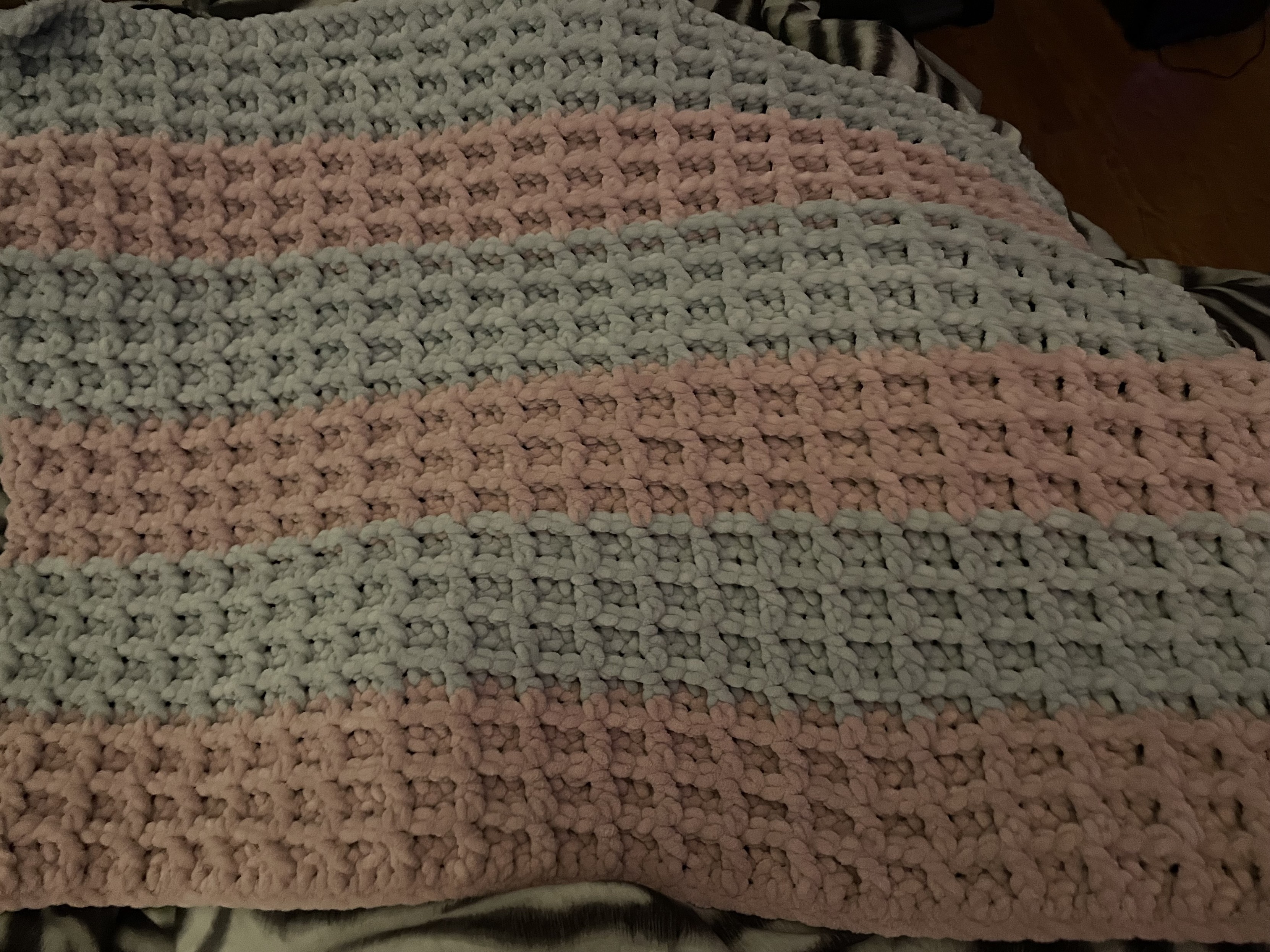 I made this for a friend who had a baby on the way at the time. Was the first time making a project with these colors. I didn't use a pattern, but it turned out excellent!